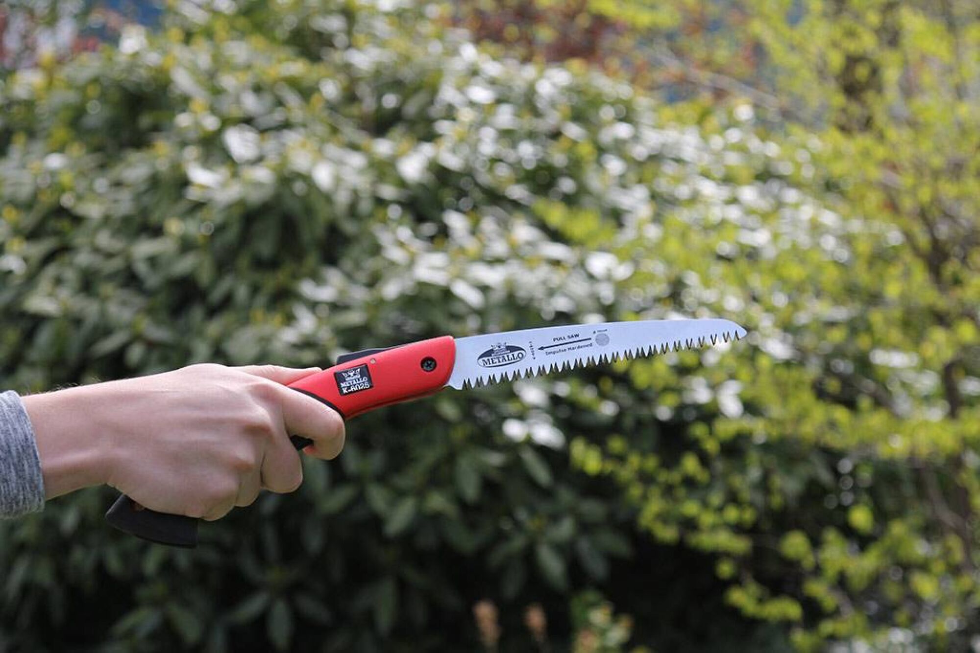 The Metallo K-6025 is a compact folding pruning saw with a straight blade, impulse-hardened teeth and triple-ground design. Its unique tooth setting allows effortless cutting through wood, as well as plastic and PVC. A straight blade is ideal when you need controlled and precise cuts, such as horizontal pruning or work on easily accessible branches. The impulse-hardened teeth stay sharp up to three times longer than traditional saws and require minimal maintenance. The recommended cutting thickness is approximately 70 mm. The total length is 242 mm, and the blade length is 180 mm.
