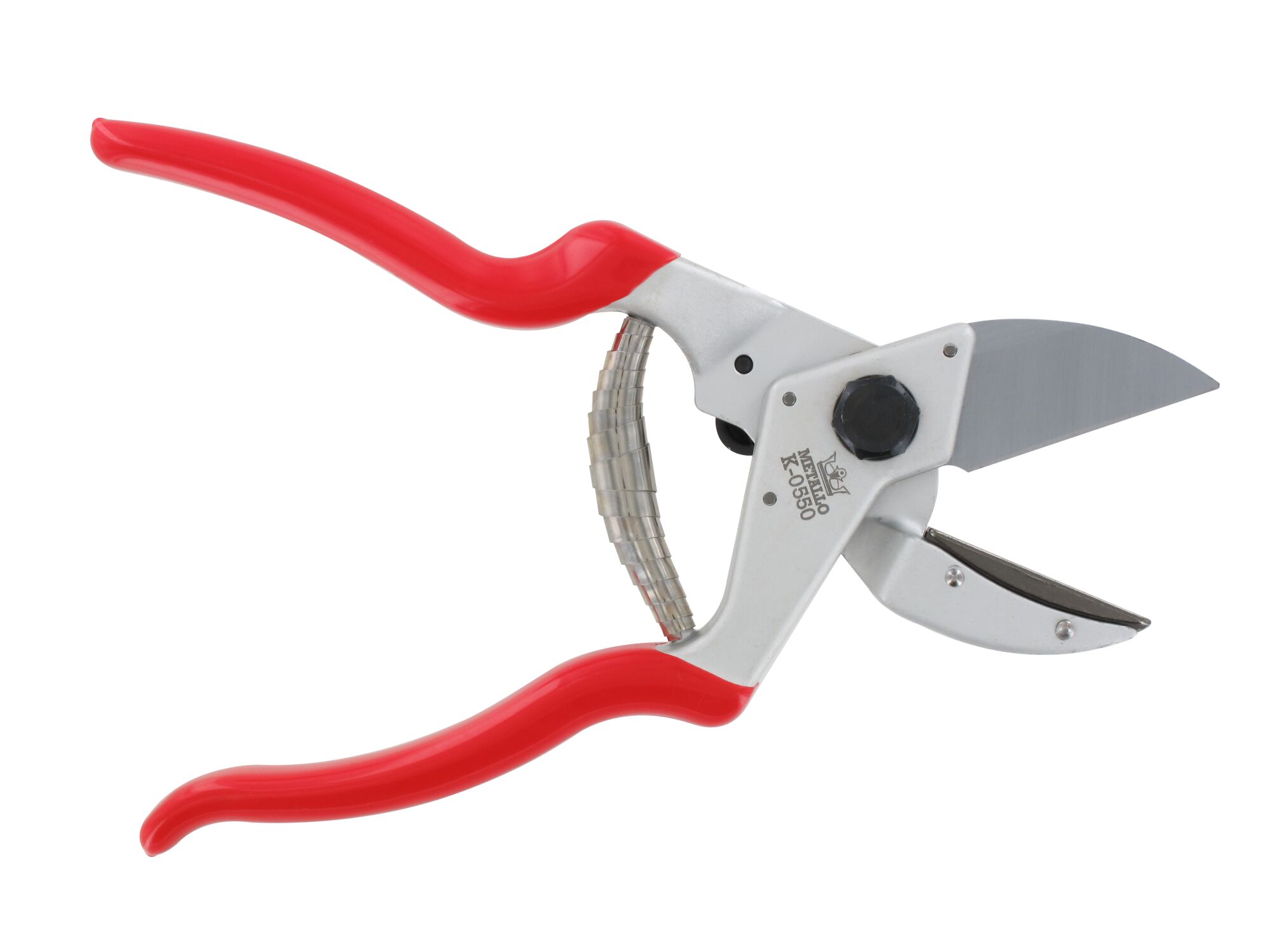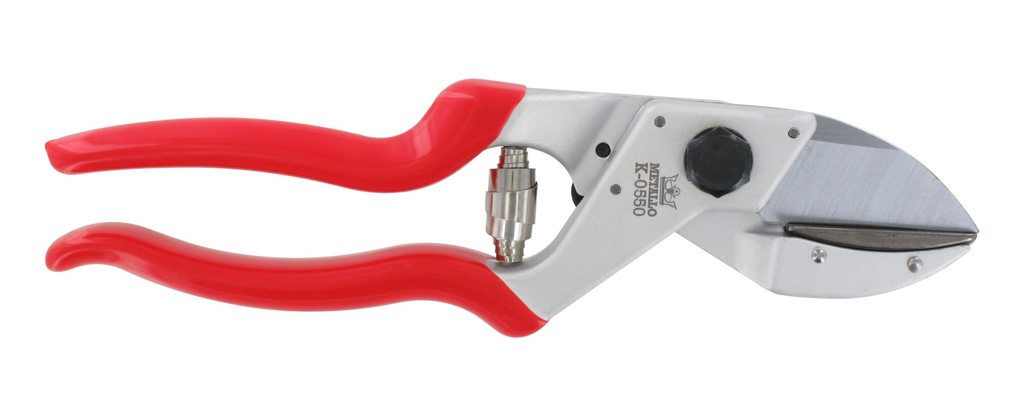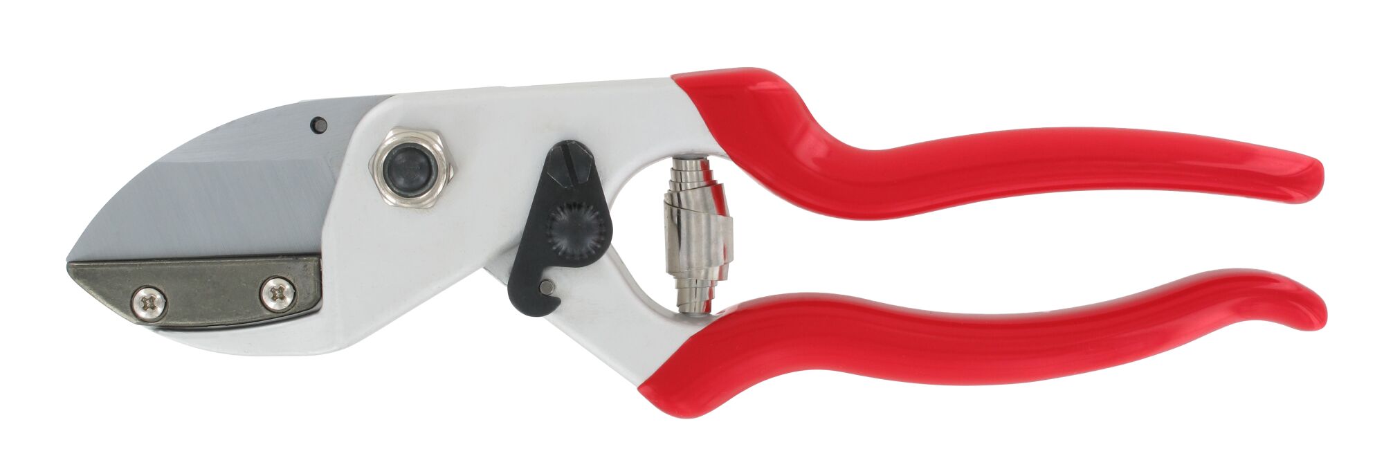 De Metallo K-0550 is een robuuste aluminium snoeischaar met een krachtig aambeeldmechanisme, ontworpen voor efficiënt en moeiteloos snoeien. Het carbon geharde en verchroomde snijblad zorgt voor een scherpe, duurzame snede en is bestand tegen intensief gebruik. Dankzij de lichte aluminium constructie en ergonomische handgrepen ligt de schaar comfortabel in de hand. Deze snoeischaar knipt moeiteloos takken tot 25 mm dikte en is ideaal voor zwaar snoeiwerk of het verwijderen van dood hout. Reserveonderdelen zijn beschikbaar en de schaar heeft 10 jaar garantie, wat zorgt voor langdurige betrouwbaarheid. Een aambeeldsnoeischaar is vooral geschikt voor hard en dood hout: het aambeeld ondersteunt de tak, waardoor er minder kracht nodig is en het snijblad minder snel slijt.