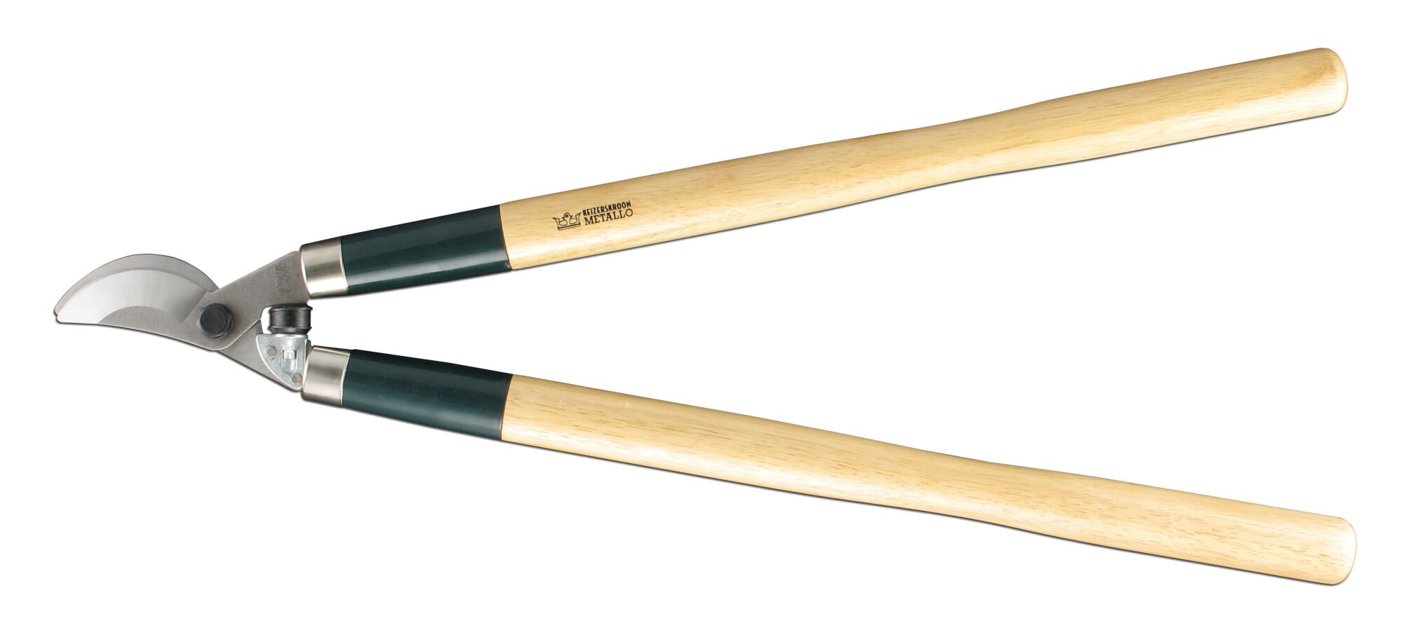 Traditionele takkenschaar met gebogen snijbek en houten stelen. De bladen zijn vervaardigd uit carbon gehard staal en blijven zeer lang scherp. De houten stelen hebben een ingebouwde demper om de polsen te ontzien. De totale knipdikte is 35 mm.