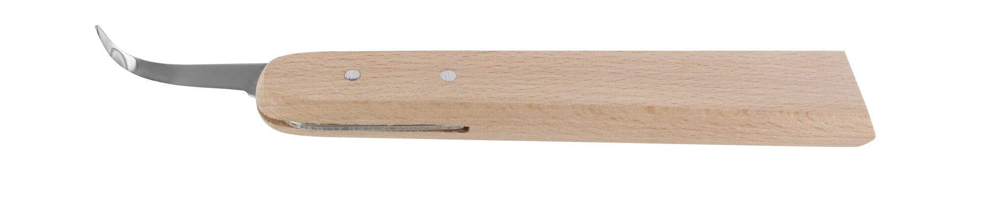The Metallo 960085 is a professional curved knife with a high-quality C60 carbon steel blade, specially designed for hollowing and trimming flower bulbs such as tulips. The curved shape allows precise and controlled removal of material without damaging the bulb. The wooden handle provides a firm, comfortable grip with a natural non-slip texture, even in wet conditions. C60 steel is known for its hardness and long-lasting sharpness but is not stainless — cleaning, drying, and light oiling after use is recommended.